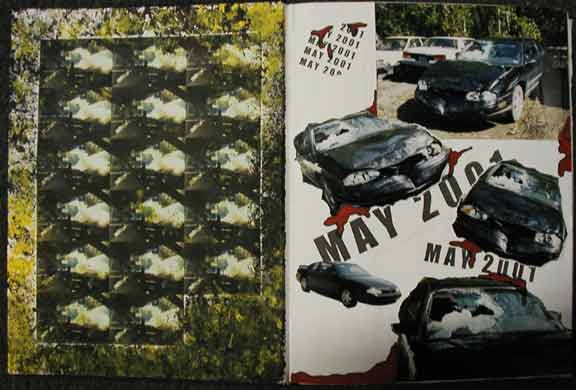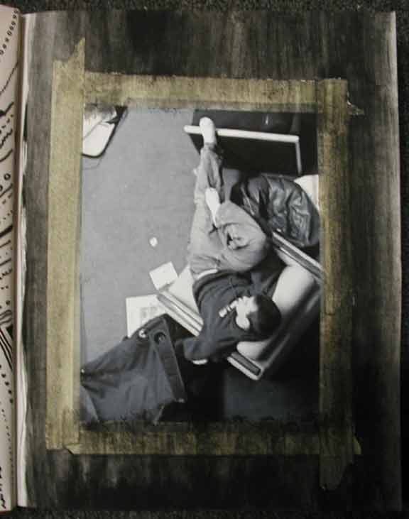 I first saw Dan’s Journals in his book “The Journey Is The Destination”. I was browsing the Art section of a book store when I spotted it. As soon as I opened the book, I knew I wanted it. I sat down right then and looked over every page. I later bought the book and it is the biggest source of inspiration for me. Each page bleeds emotion and passion. Early in 2001, I began my own Dan-Inspired Journal. I put everything and anything into my journal. There are pictures, drawings, paintings, stickers, newspaper clipings, and stories inside it. I love that I can do whatever I want inside of my book. It holds a ton of memories for me. It has become more than just a journal, it is my on-going art project that will never be completely finished.