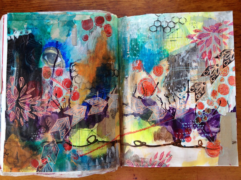 I’ve met some incredible people and some of my most intimate, truthful, and respected relationships have been forged because of art journaling and the freedom it’s given me. I’m also traveling again (short trips) to workshops and conferences learning new ways to be brave on the page.